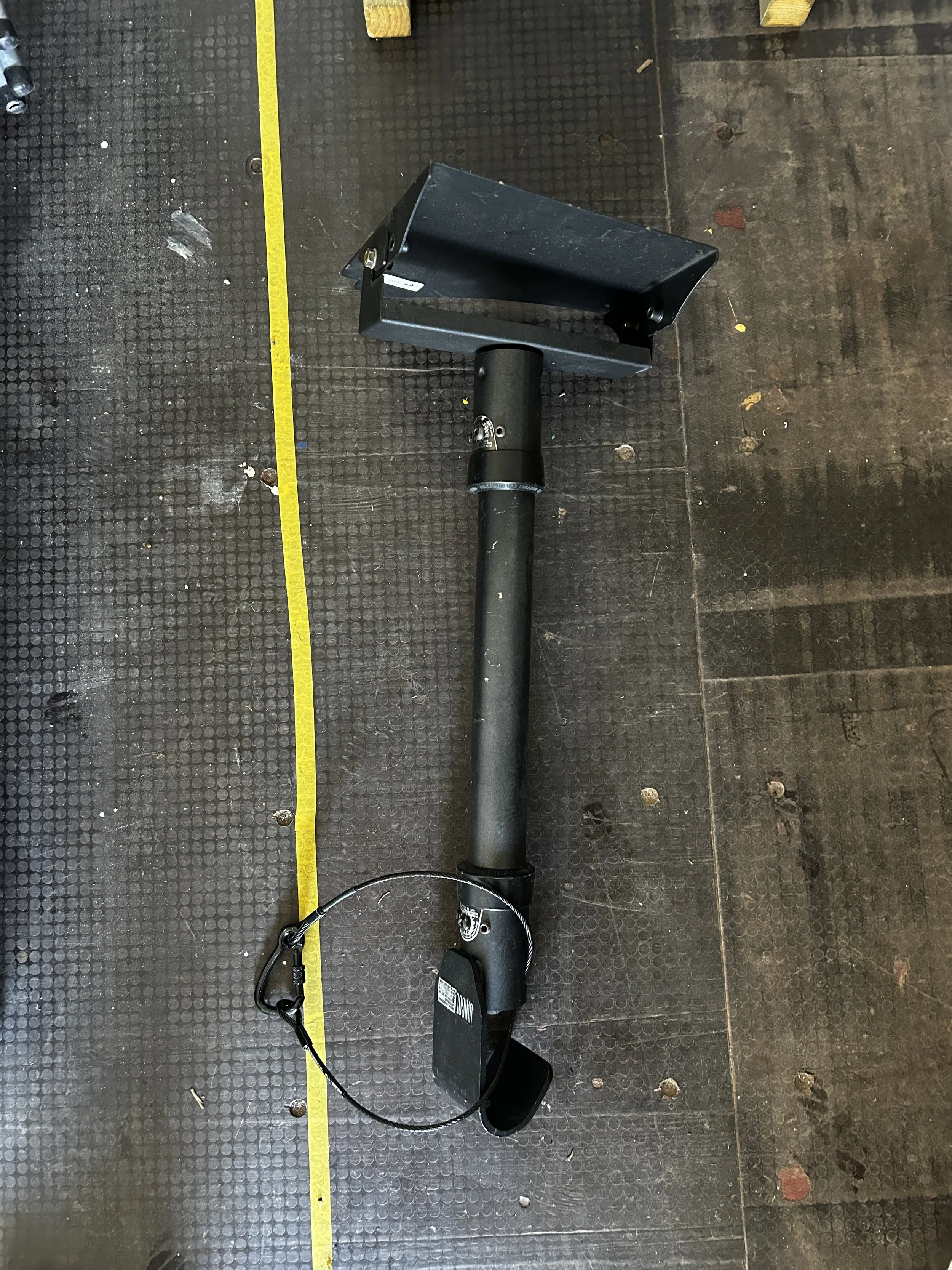Solid adjustable steel projector mounting bracket with safety cable. Ideal for ceiling or truss installation in theatres, galleries, or event spaces. Good condition with minor cosmetic wear.